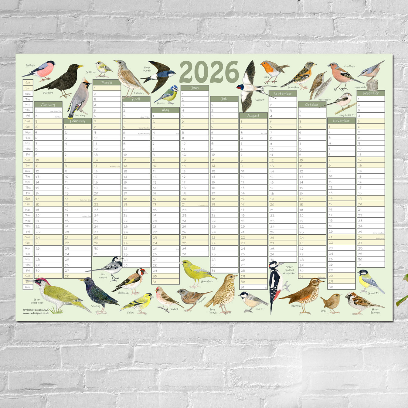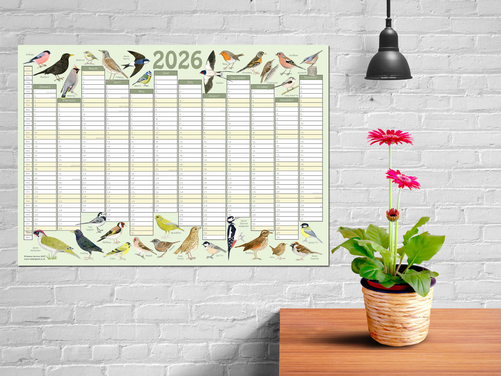Beautiful British Garden Birds Year Wall Planner Poster